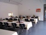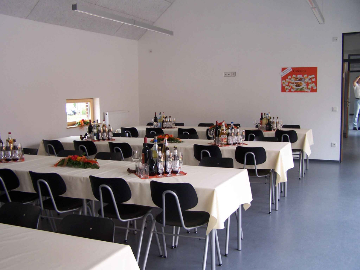 In der zweiten ehemaligen Scheune finden auf cirka 150qm eine Cafeteria, eine Küche, Sanitärräume und ein Zimmer für Hausaufgaben Platz. In der Cafeteria wird man auf einer Fläche von 50 qm ab September Mittagsessen können. Dabei wird man das Catering-System der Firma Hofmann-Menü nutzen.